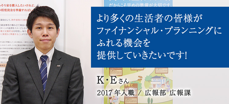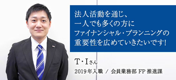大学生時代に受けた「ファイナンシャル・プランニング講義」という授業で、生活の中でお金の知識が欠かせないことや労働で得る給料には様々な税金や社会保険制度が天引きされること、何よりもそのようなことを学ぶ授業や機会が今までになかったことに気付きました。そのため、パーソナルファイナンス教育活動や生活者向けイベント等を通じて、FPの重要性を普及している日本FP協会の事業を知り、また、組織として社会貢献を目的に活動していることに非常にやりがいを感じたため、入職を決めました。