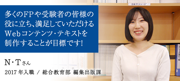 今よりも多くの方々に手に取っていただける書籍を制作していくこと、読みやすくわかりやすいコラムを制作していくことが大きな目標です。時流に沿って内容をブラッシュアップすることはもちろんですが、使っていただくFPの皆様の目線を常に意識し、使いやすい書籍になるように工夫を続けていきたいと思います。一度に色々なことを進めることは難しいですが、まずは目の前の仕事を丁寧に着実に進めるということを日々の目標にしています。