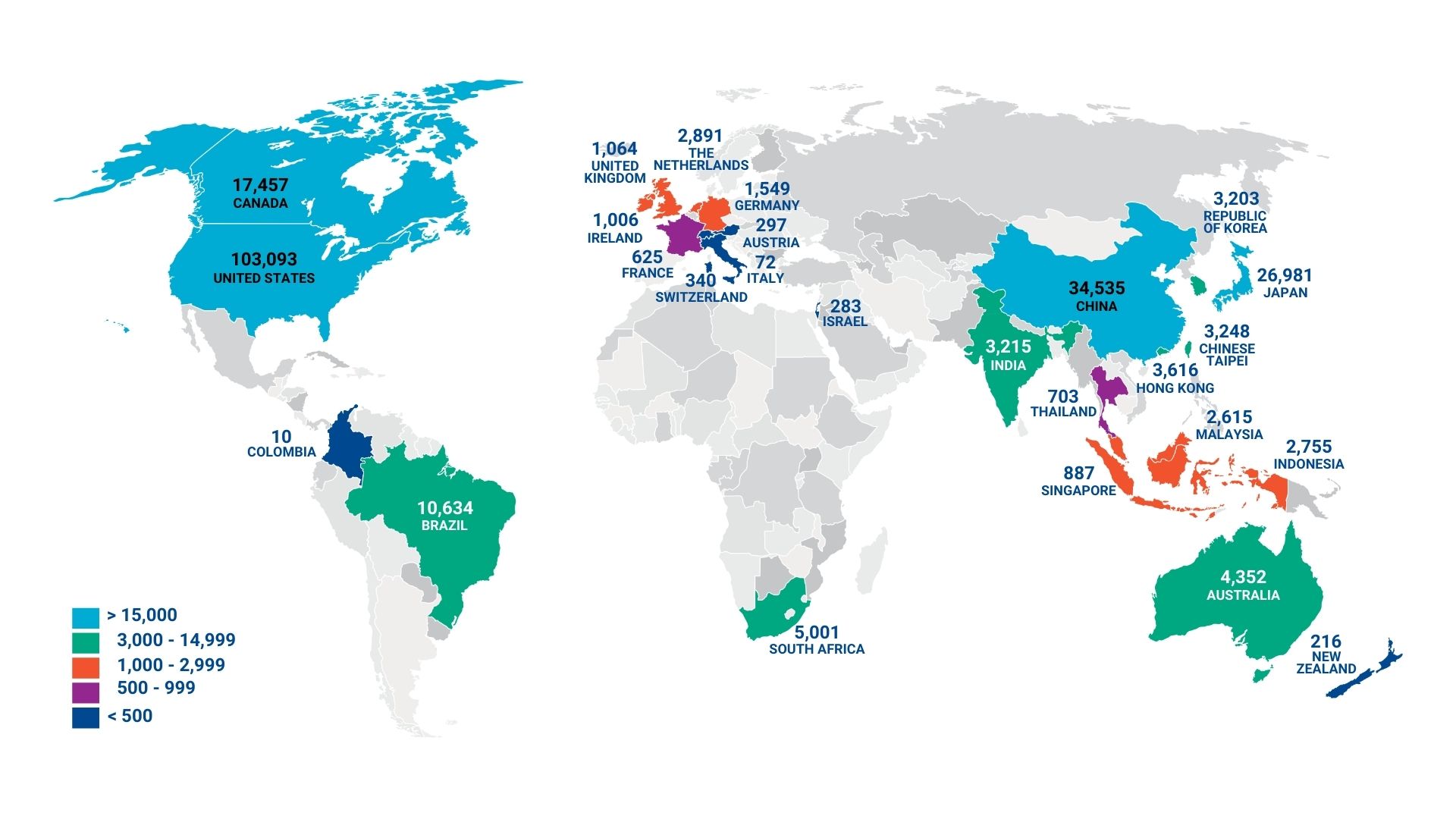 ◆増加数上位2カ国:米国(4,218人)、ブラジル(1,255人)