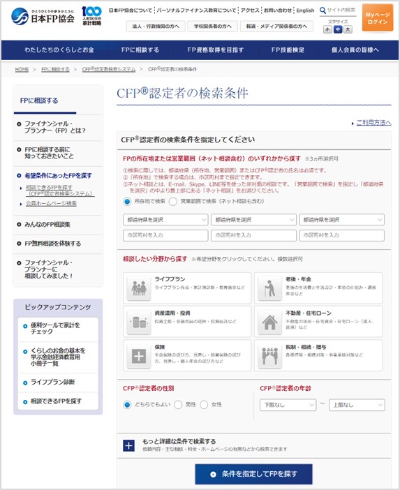 相談できるCFP®認定者(FP)を探すナビ(CFP®認定者検索システム)