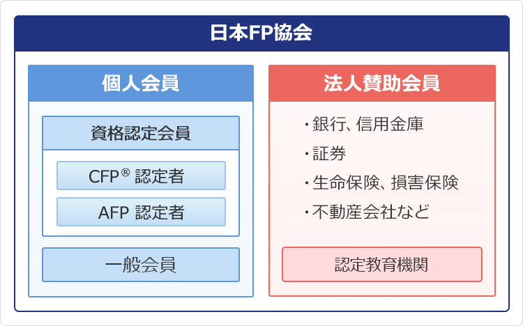日本FP協会は、個人会員(資格認定会員・一般会員)と、法人賛助会員を設けています。