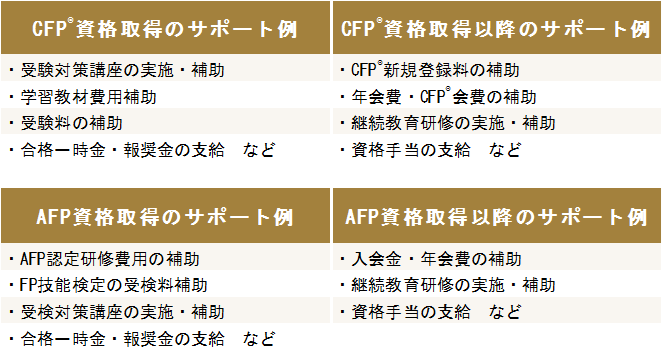 企業の人財戦略の一環として、CFP®・AFP資格取得を支援する制度が広く導入されています。