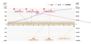 子どもの教育費がかさむ時期や貯蓄残高がなくなってしまう時期など注意が必要なポイントをチェックできます!