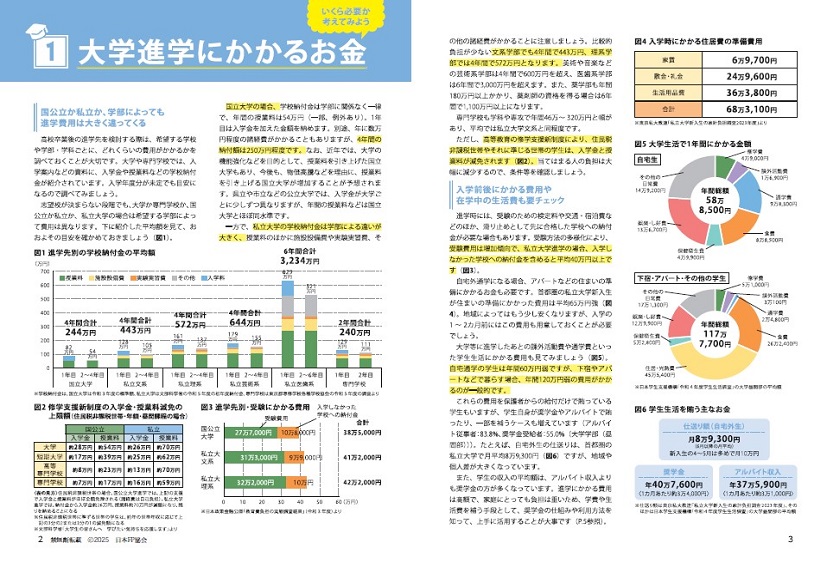この小冊子は高校生・大学生・保護者・学校関係者の方を対象に、奨学金も含めた進学にかかる資金計画や奨学金の返還の仕方など奨学金に関する基礎知識を学び、将来のライフプランに役立つ内容となっています。なお、学校の授業で使用する場合は無償で提供しています。