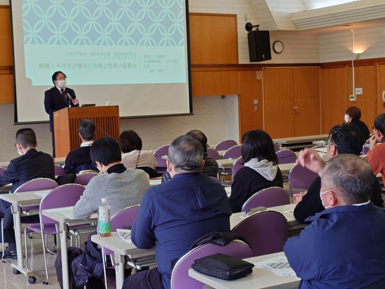 西尾市西幡豆町において、1994年の開業以来、地域に根ざした実務を積み重ねてこられた深谷裕寿先生にご登壇いただきました。西尾市民は生前消費が少ない傾向にあるため、預貯金や株式など多額の遺産が相続されるケースが多いという地域性からお話を始められました。一見難解に思えるテーマの講義ですが、先生のご解説により、参加者が徐々に内容を理解していくことが感じられました。