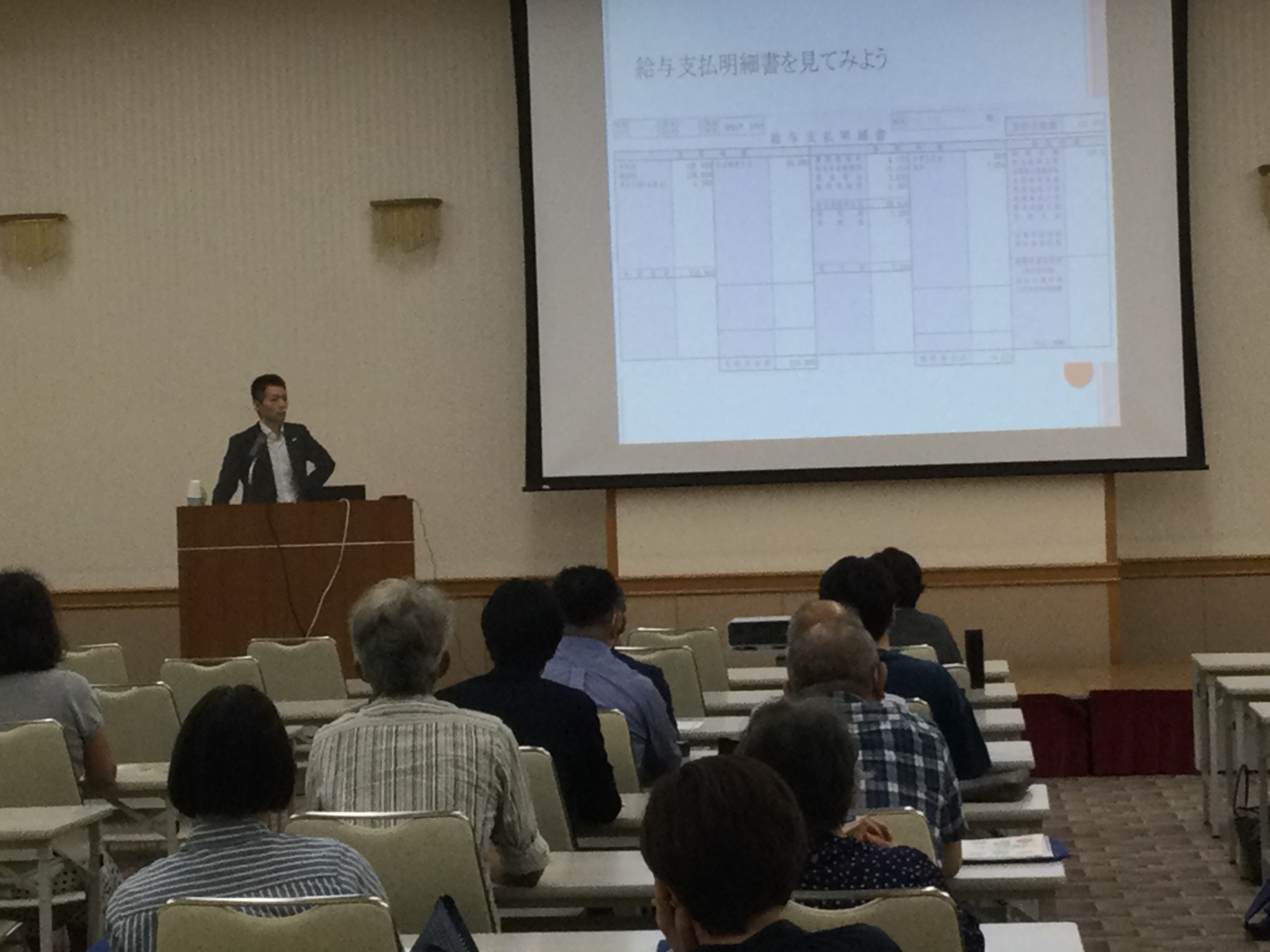 引き続き開催しました第2部セミナーでは、「給与明細から学ぶ、公的保障制度〜もしもの時知っておきたい事〜」と題し、地元FPの伊藤佑樹氏(AFP)が社会保険制度等についてご説明されました。