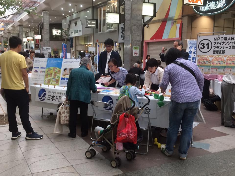 15日16日の2日間、松山市みんなの生活展に出展しました。多くの方々にブースにお立ち寄りいただき、ファイナンシャル・プランニングやFPの日の広報活動を行いました。特に、日曜日は「なりきりお弁当屋さん」という、お子様向けゲームが親子づれの方に人気でした。