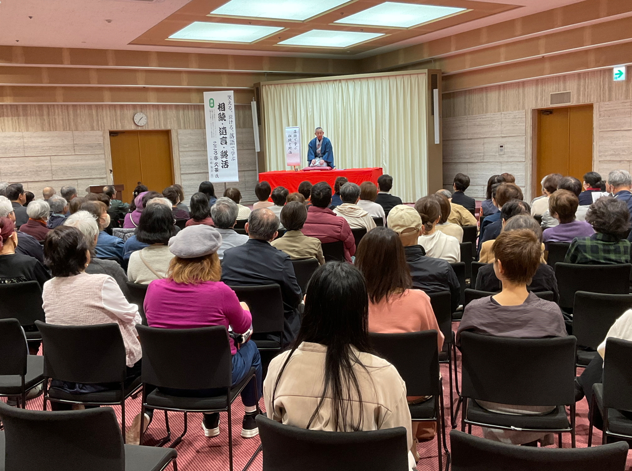 AFP認定者(ファイナンシャル・プランナー)で実務家のこころ亭久茶(木﨑海洋)氏を講師にお迎えし、「笑える、泣ける、落語で学ぶ相続・遺言・終活」と題しご講演いただきました。終活の一環として、相続の事前対策や遺言書作成の勧め等について、事例を交えながら落語風にわかりやすく解説していただきました。