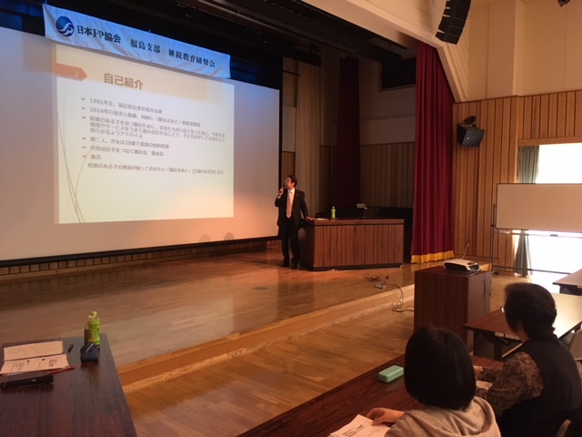 年老いた親が障がいのある子どもの面倒をみる「老障介護」が社会問題となっています。老障介護の悲劇を起こさないために、公的保障・民間保障等の視点から現状と課題、そしていま社会がどうなっているかの方向性を、講師ご自身の体験自分を基に熱く語られました。 -