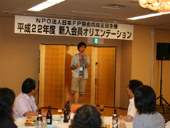 総評:第一部のオリエンテーションでは、兵庫支部の活動内容や支部所属のスタディグループを紹介し、支部に対する理解を深めてもらいました。また、継続研修として小幡賢治 氏による講演『FPで生きる』では、FPで生きていく上でのヒントなど熱のこもったお話がありました。第二部の懇親会では、各SGのアピールや各テーブルごとに今日の感想などのスピーチをして頂きました。また、参加者の各様々な方との親睦・交流ができ、大変盛り上がっていました。 -