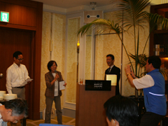 総評:第二部の懇親会では、ビンゴゲームで名前を読み上げられた人が、自己紹介などスピーチをして頂きました。