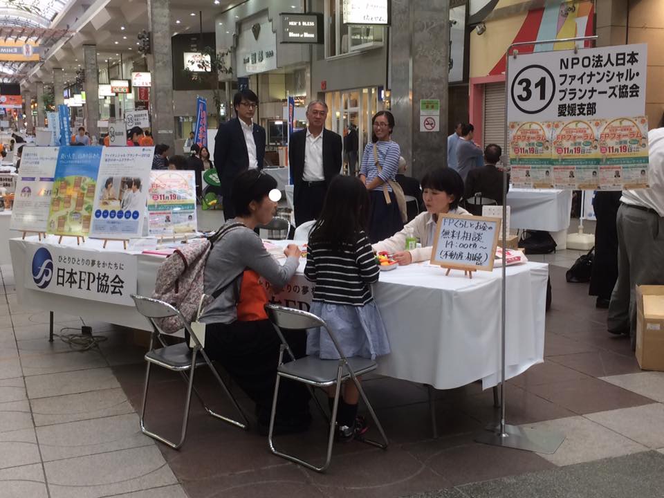 15日16日の2日間、松山市みんなの生活展に出展しました。多くの方々にブースにお立ち寄りいただき、ファイナンシャル・プランニングやFPの日の広報活動を行いました。特に、日曜日は「なりきりお弁当屋さん」という、お子様向けゲームが親子づれの方に人気でした。