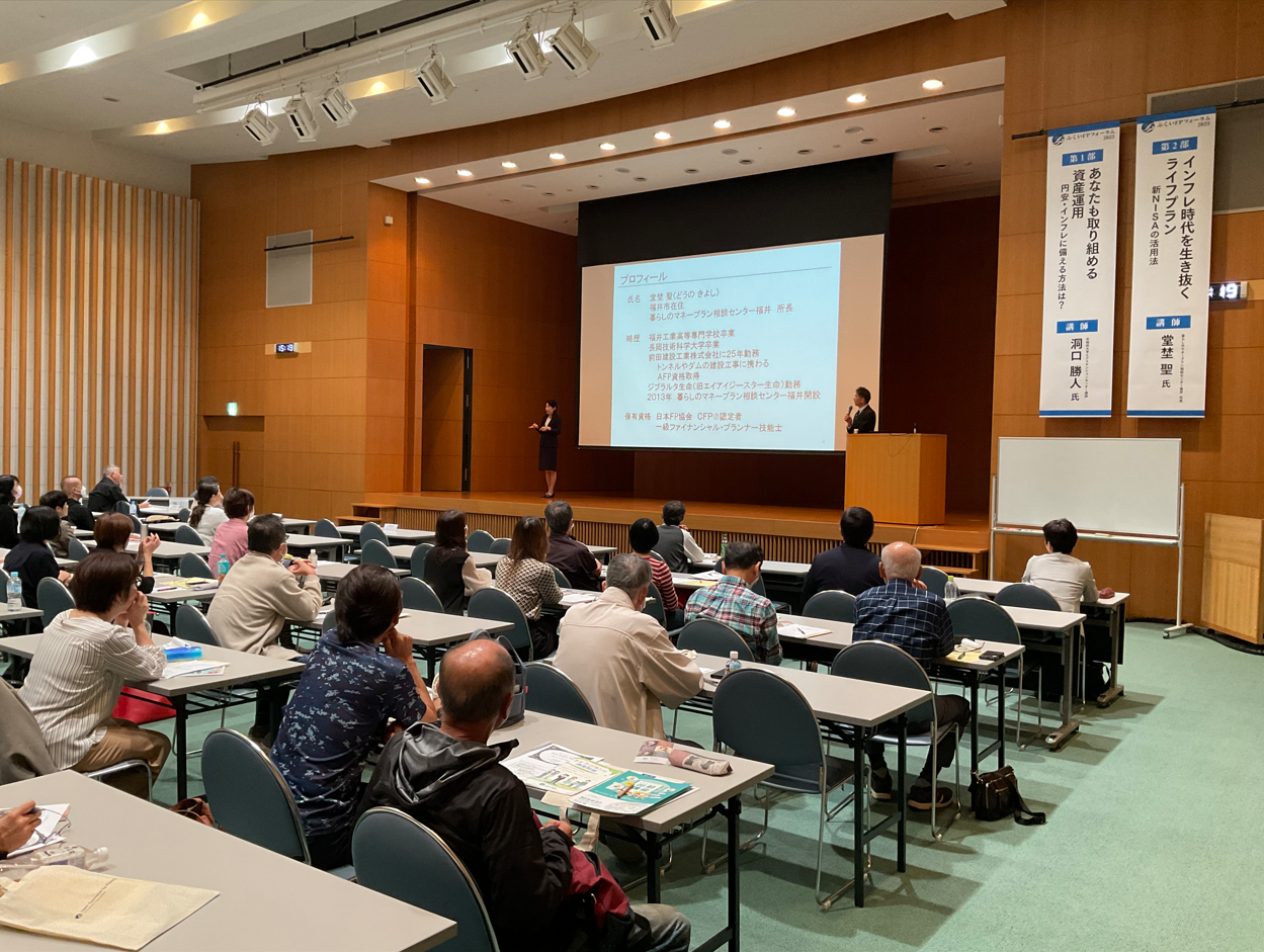 13:30よりセミナー「あなたも取り組める資産運用〜円安・インフレに備える方法は?」を開催しました。CFP®(ファイナンシャル・プランナー)の洞口勝人氏に人口推移や個人金融資産の現状等をご解説いただき、資産の見える化や正確な知識を増やすことで正しい判断につながるよう理解を深めていただきました。