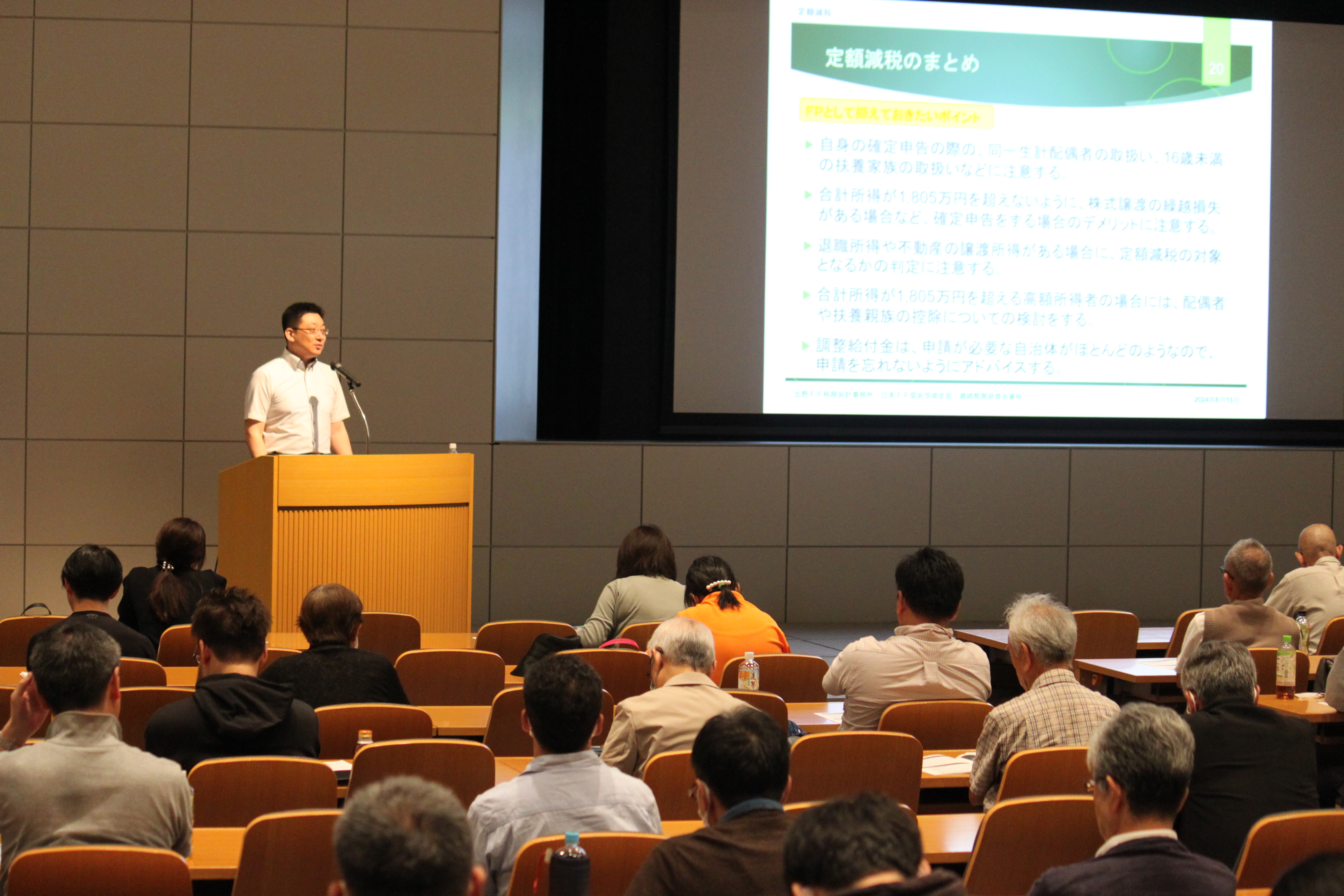 令和6年度の最新の税制改正について、今般はじまった「定額減税」の具体的な減税額等を基に説明され、また、子育て世代を支援する住宅税制の拡充についても説明がありました。これらの改正は所得税だけでなく住民税にも適用され、家計の負担軽減される効果を分かり易くお話頂きました。