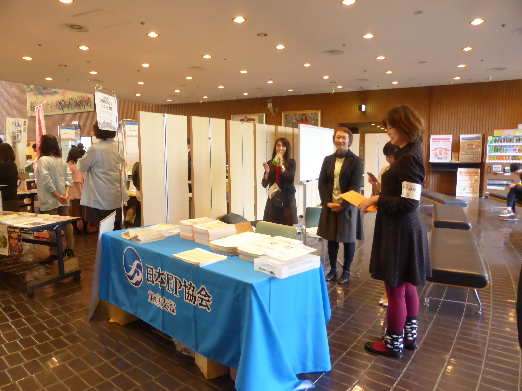 平成29年12月9日、新宿区が主催する「若者のつどい」が新宿文化センターで開かれ、日本FP協会東京支部は今年もこのイベントに参加しました。7回目になります。例年通り二部構成のセミナーとミニ相談会を行いましたが、新しい趣向を二つ付け加えました。一つは、会場を4階の会議室から1階ロビー奥のオープンスペースに移したこと、もう一つは最新のマネー知識を取り扱ったテーマに挑戦したことです。おかげさまで若者をはじめ多くの方に参加していただき、大成功のうちにイベントを終了することができました。
