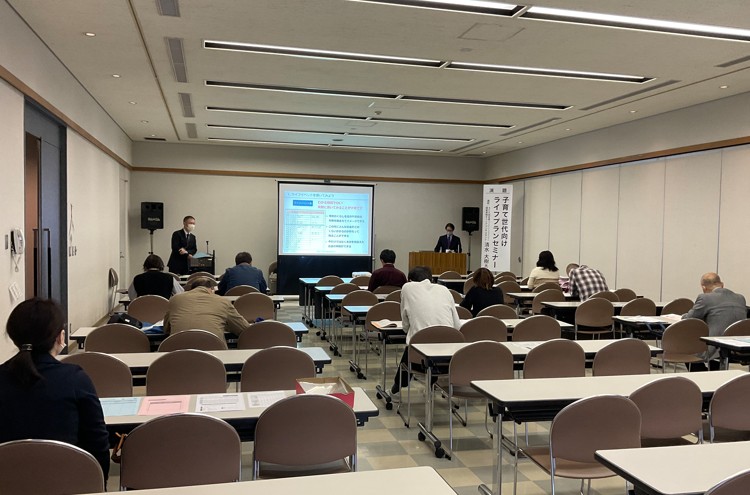 「子育て世代向けライフプランセミナー」では、地元FPの清水大樹氏が、キャッシュフロー表の作成や活用方法を紹介し、家計管理のポイントについて説明されました。