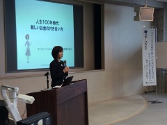 引き続き開催のセミナー2『人生100年時代に向けて』では、講師の飯田貴美氏(AFP・ファイナンシャル・プランナー)が日本社会の現状を説明したうえで、ライフプランやキャッシュフローの視点から将来に向けてのお金の準備についてお話されました。