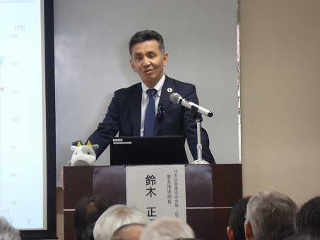 第一部では、鈴木 正己氏(日本証券業協会 金融・証券教育支援本部普及推部長)に「我が国における個人の証券投資の実態と課題—証券投資に関する実態調査の結果等を踏まえて—」と題し、第二部では、島 義夫氏(玉川大学 経営学部教授)に「最近の金融市場の動きと個人の資産運用」と題し、ご講演いただきました。