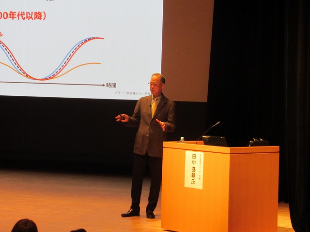 景気や株価はどのようなサイクルをたどっているのか、またアメリカを中心とした世界市場から、翻弄される日本の為替をどのように予測したらよいのかを為替のプロである田中氏に分析していただきました。変化の激しい世の中でFPとして市場を読み解く目を養うこと、そして時流をとらえた提案を心掛けることの大切さを再認識する貴重な講演となりました。
