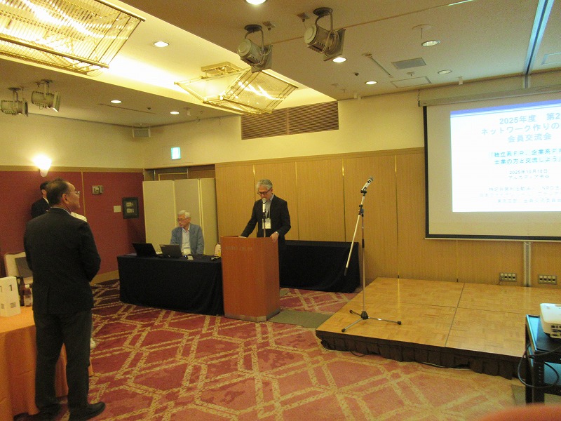 10月18日(水)にアルカディア市ヶ谷私学会館にて、2025年度第2回ネットワーク作りのための会員交流会「独立系FP、企業系FP、士業の方と交流しよう」を開催しました。64名が出席しトーク、グループセッション、自由交流の構成で実施しました。
